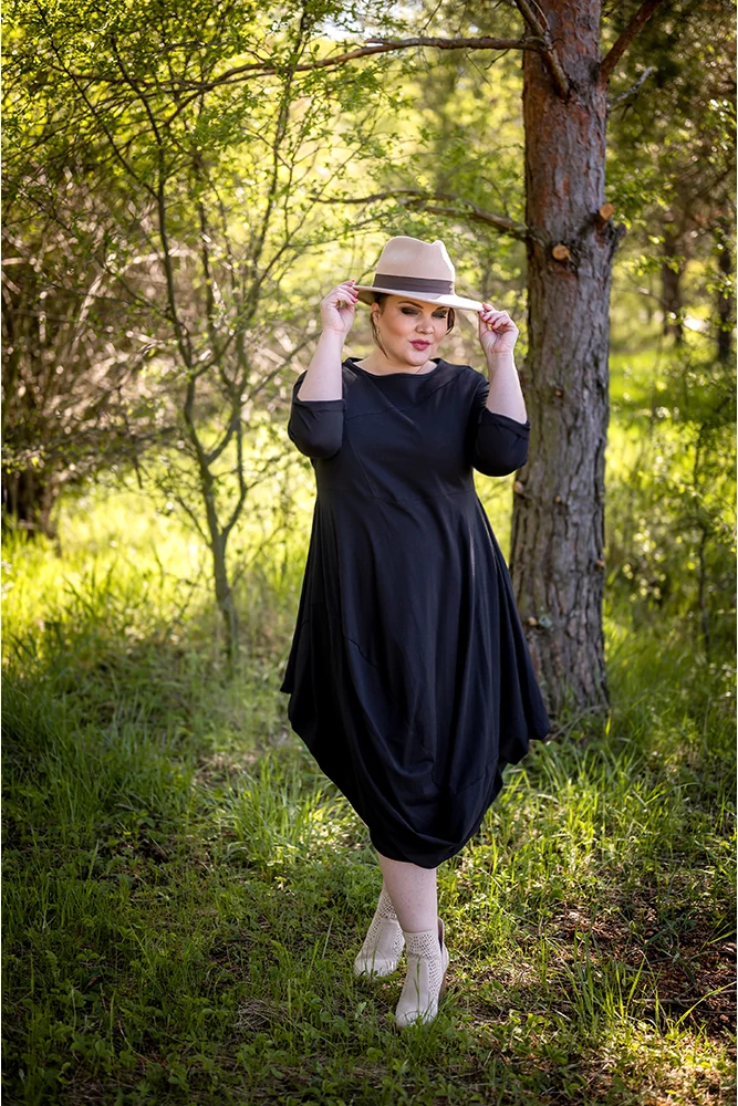 Bohém. Lehetetlen. Rongyos. Össze-vissza áll. A karja könyékig ér, felpöndörödős. Alul a kivágása csak egy lyuk. És ez a kedvenc ruhánk. Soha ennyi bókot, meghökkenést rácsodálkozást, mosolyt, elismerést ruha még nem kapott, mint ez: ha a négy sarkából forgatnád ki a világot, ha új lapot kezdenél az öltözködésedben, szeretettel bátorítalak - legyen ez a ruha az új kezdet. Kedvenc kilóg-belóg ruhánk feketében érkezett, egyméretes, és igazán 46-os mérettől mutat, 48-on a legislegjobb. 128-as mellbőség a vége. |