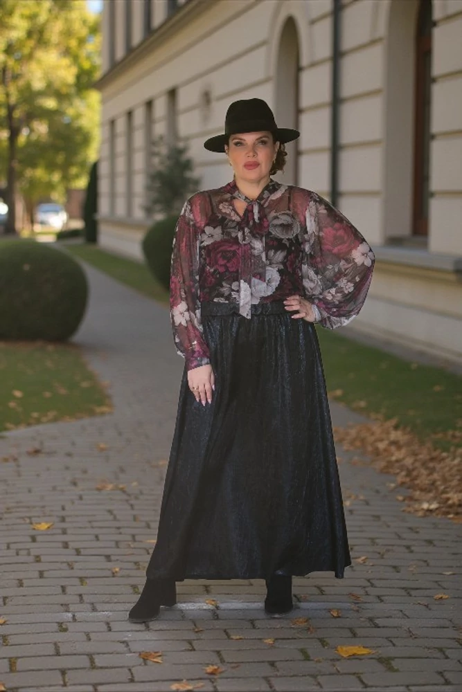 Mirtille necc blúz megkötös nyakkal - bordó virágok