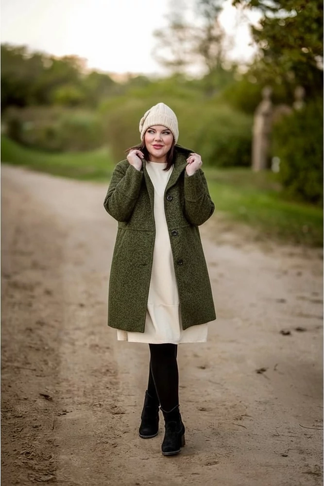 Kapucnis, béleletlen buklékabát. Mellben 120 cm a vége, csípőben is, egyenes szabású, 172 cm felett nem ajánlom, mert rövid lenne az ujja. Egyméretes, 40-42-44-es és kisebb 46-os méretekre tökéletes. Nyúzható-húzható, mosógépben alacsony hőfokon mosható. Kevert műszál, 25% gyapjúval. |